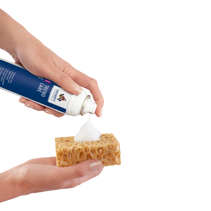 Nastříkejte pěnu na hadřík nebo houbičku a jemně vtírejte do povrchu; nechte zaschnout.
